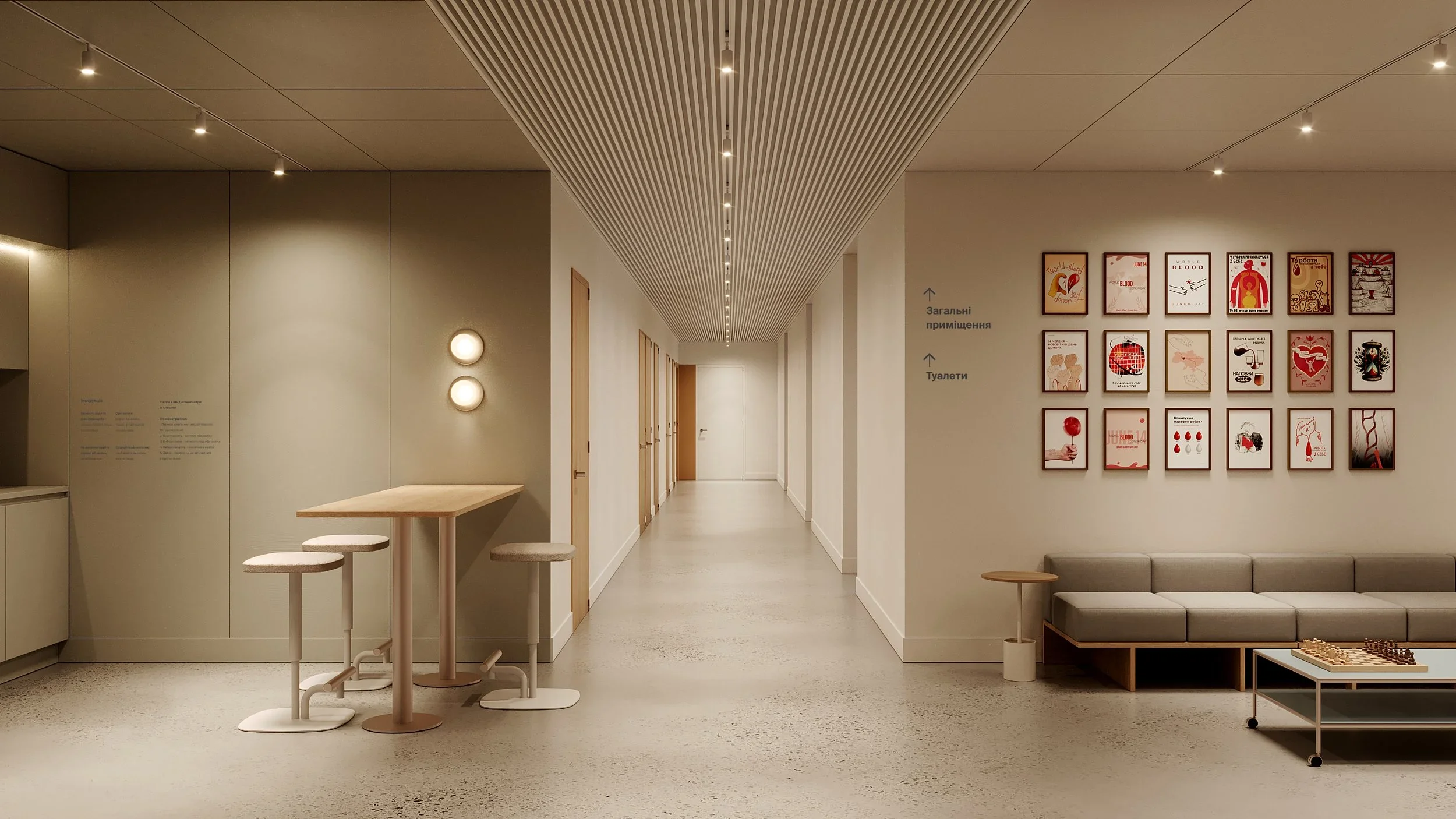В інтер'єрі команда закладала багато світла, доступ до води, зручні сидіння — все, щоб люди почувалися більш спокійно в критичній ситуації.